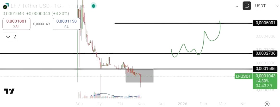 If the LF token breaks out after consolidation, it has the potential to rise to 0.00019-0.00050. Trend confirmation needs to be monitored.