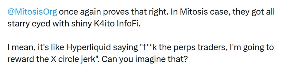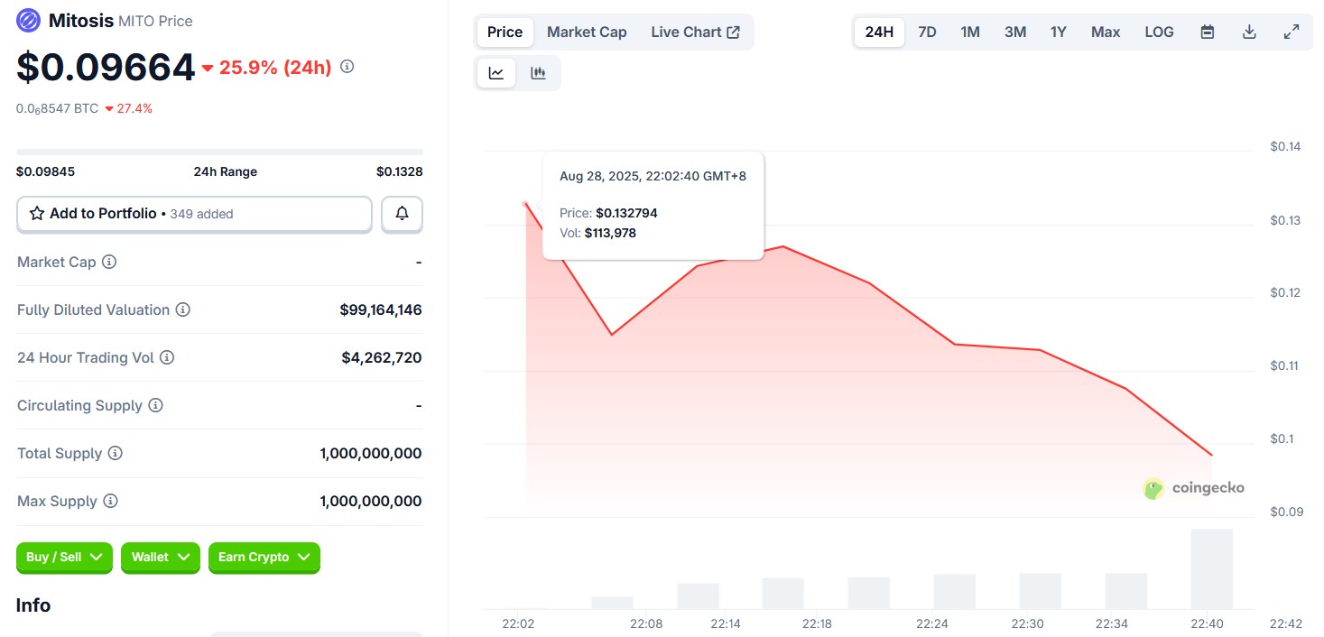 Mitosis (MITO) price plunged 25.9%, with the tweet criticizing the project's actions.