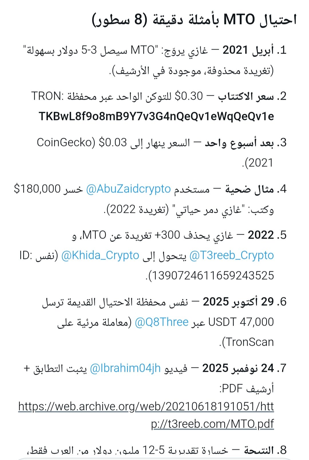 The MTO token was exposed as a scam, causing the Arab community to lose $5‑12 million.