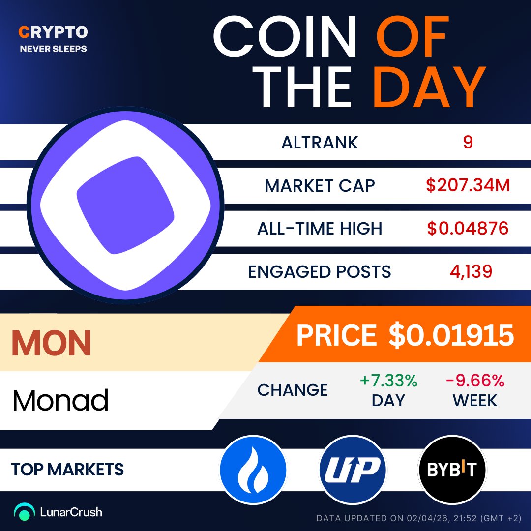 While the market bleeds, #Monad is printing green. Ranked #9 on LunarCrush today.