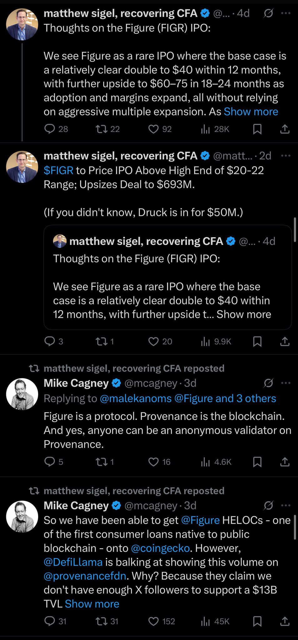 ZachXBT criticizes traditional finance's superficial understanding of the Provenance blockchain, stating its explorer is poorly designed, while Matthew Sigel is bullish on Figure/Provenance.