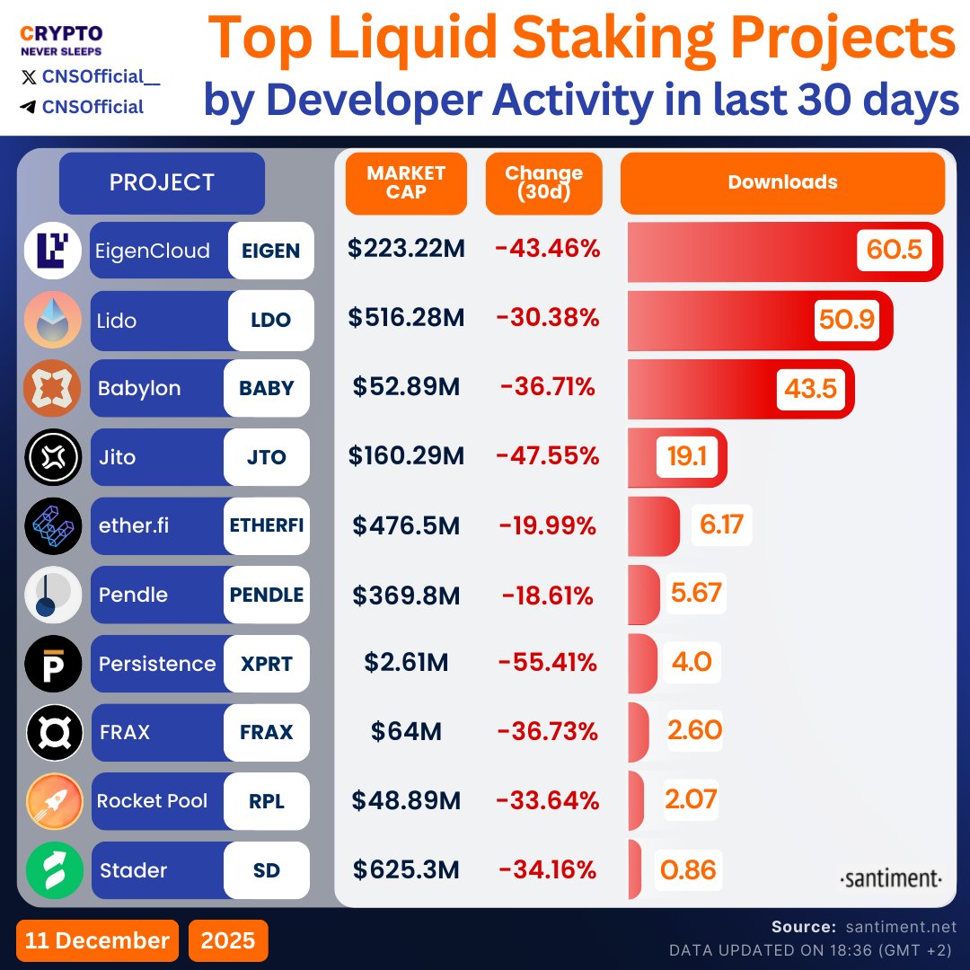 🔗 #LiquidStaking #DevActivity cooled hard this month 👀