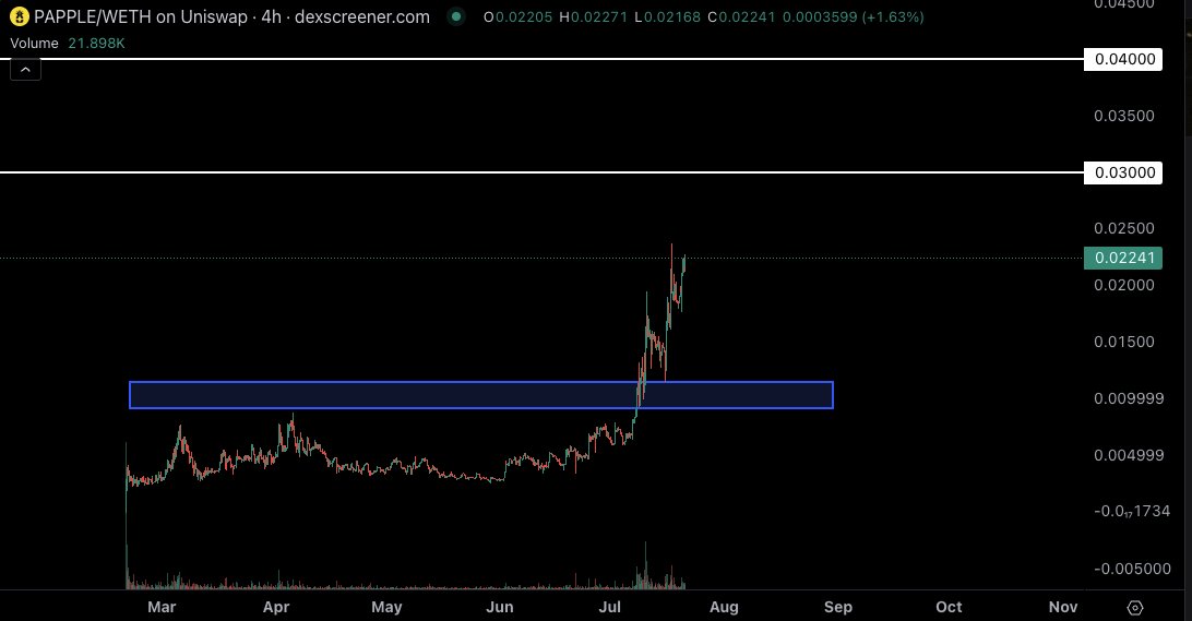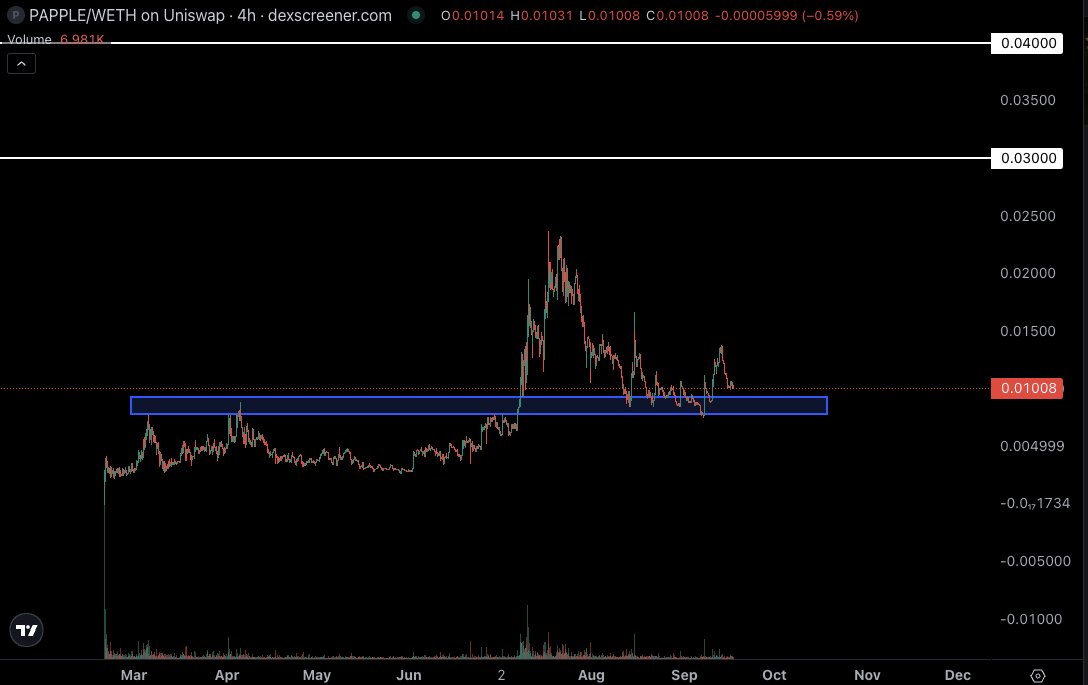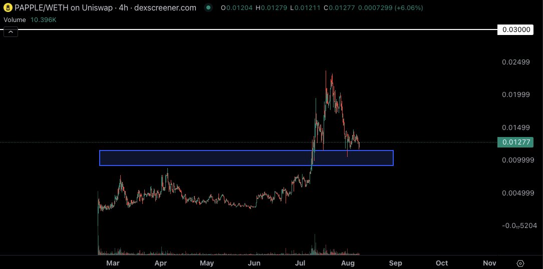 As $ETH can hopefully stay hot here to close out he month, still holding $PAPPLE and digging into a decent support area for now.