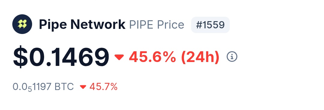 Pipe Network (PIPE) token plummeted over 45% in 24 hours. The author attributes this to poor product and a greedy team, advising to avoid it.