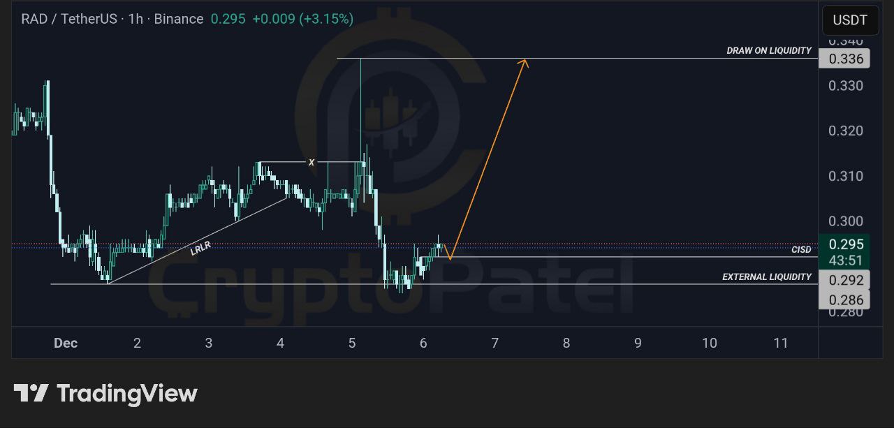 RAD is bullish, market structure is upward, entry recommended at $0.292, target $0.336.