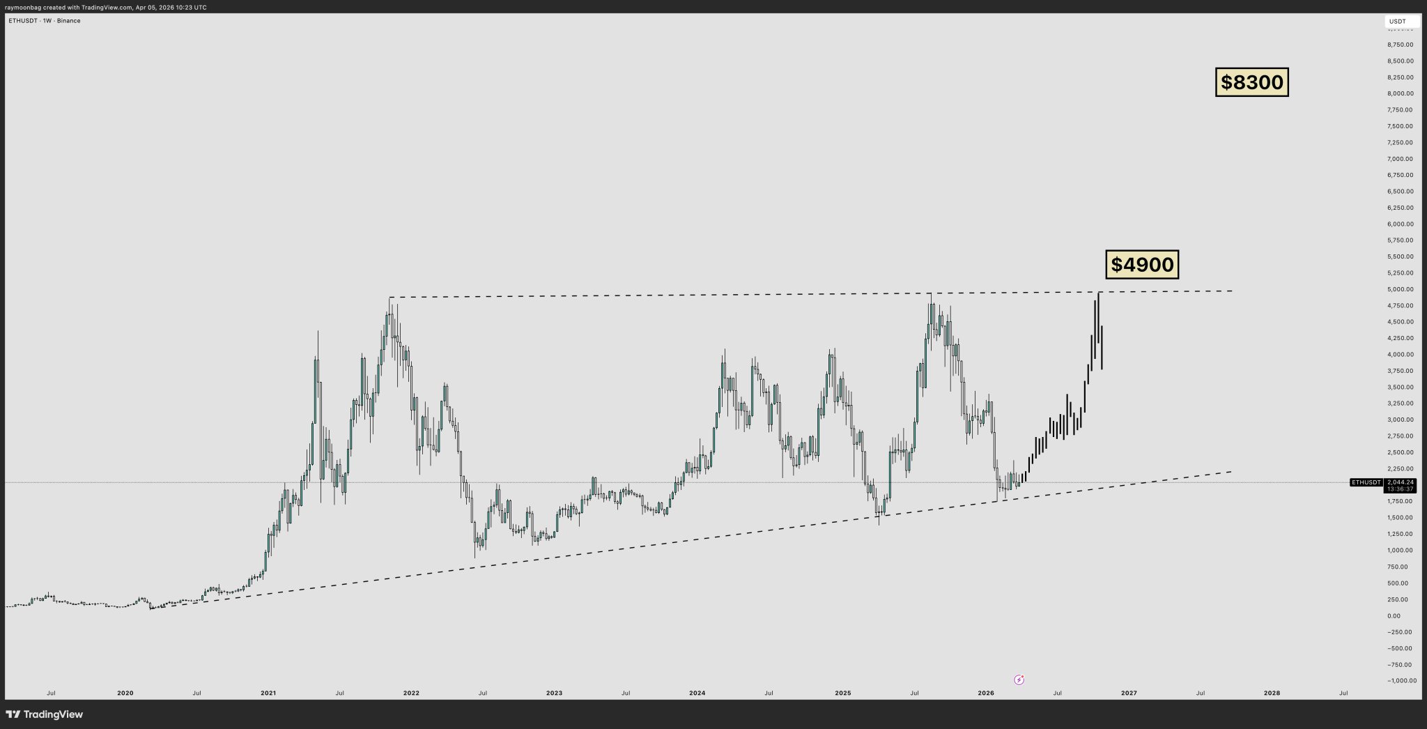 ETH is near its historical high, with potential for a strong rise to $8300.
