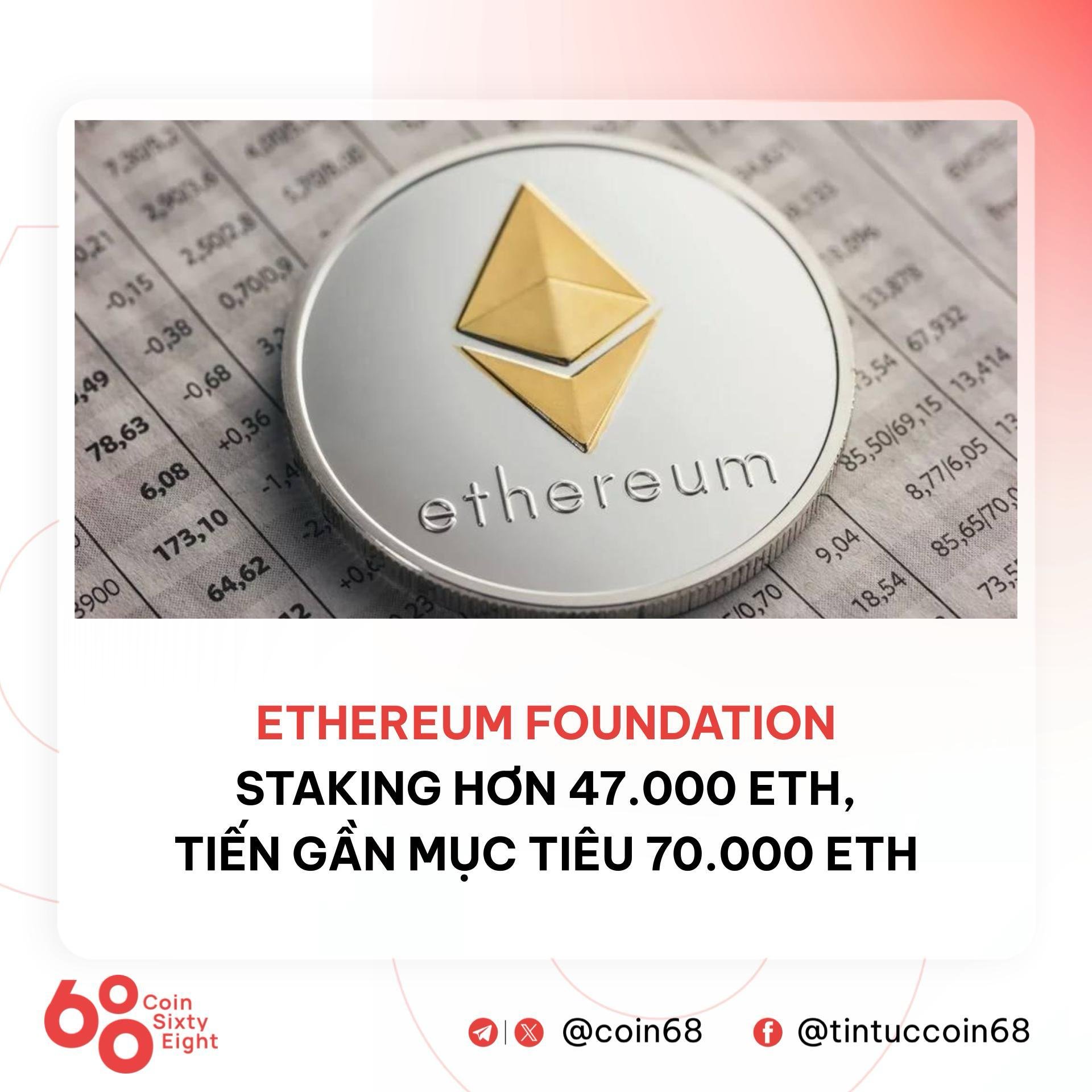 Ethereum Foundation quickly staked over 47,000 ETH, nearing its 70,000 ETH target.