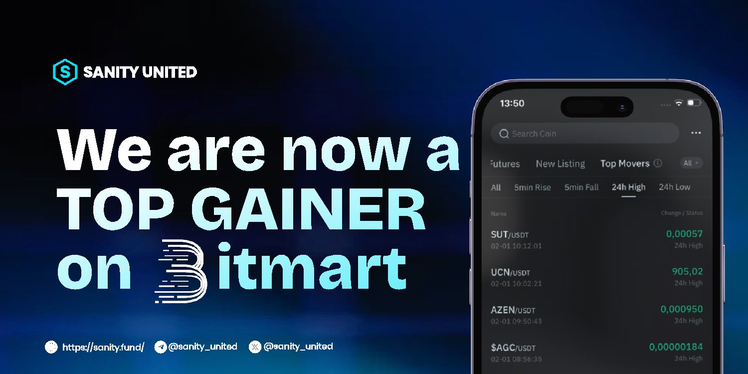 SUT surged 300% within 24 hours, becoming Bitmart exchange's top gaining token.