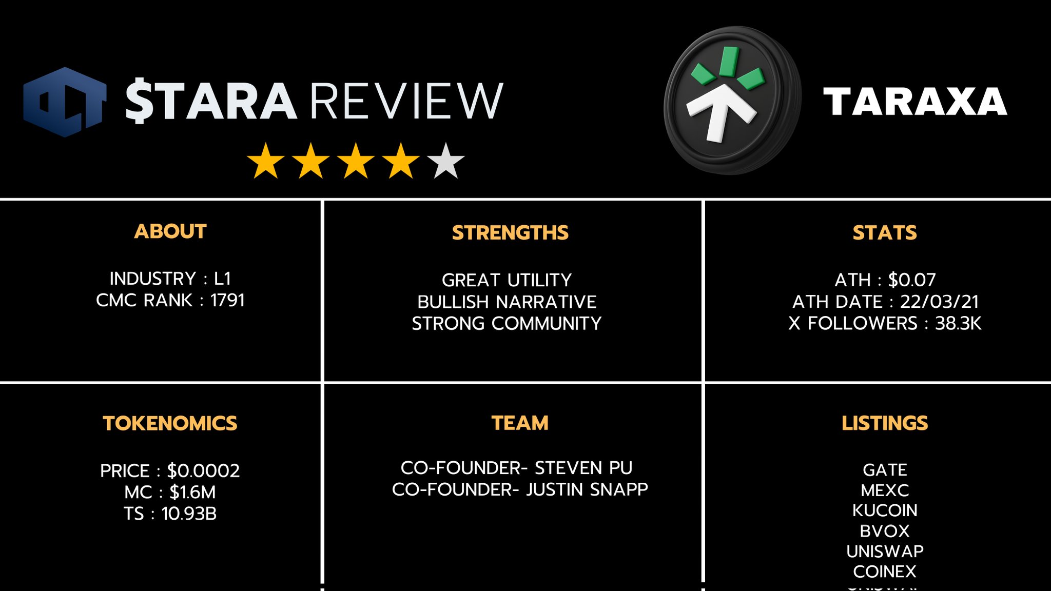 • With strong adoption metrics and utility in staking/governance, $TARA supports a scalable ecosystem for future blockchain innovation.