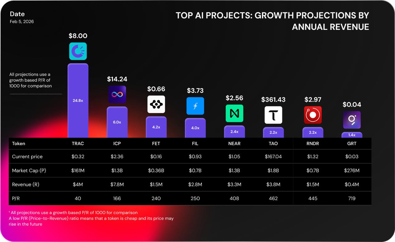 TRAC at $0.32 is valued lower than comparable AI projects, offering buying value.