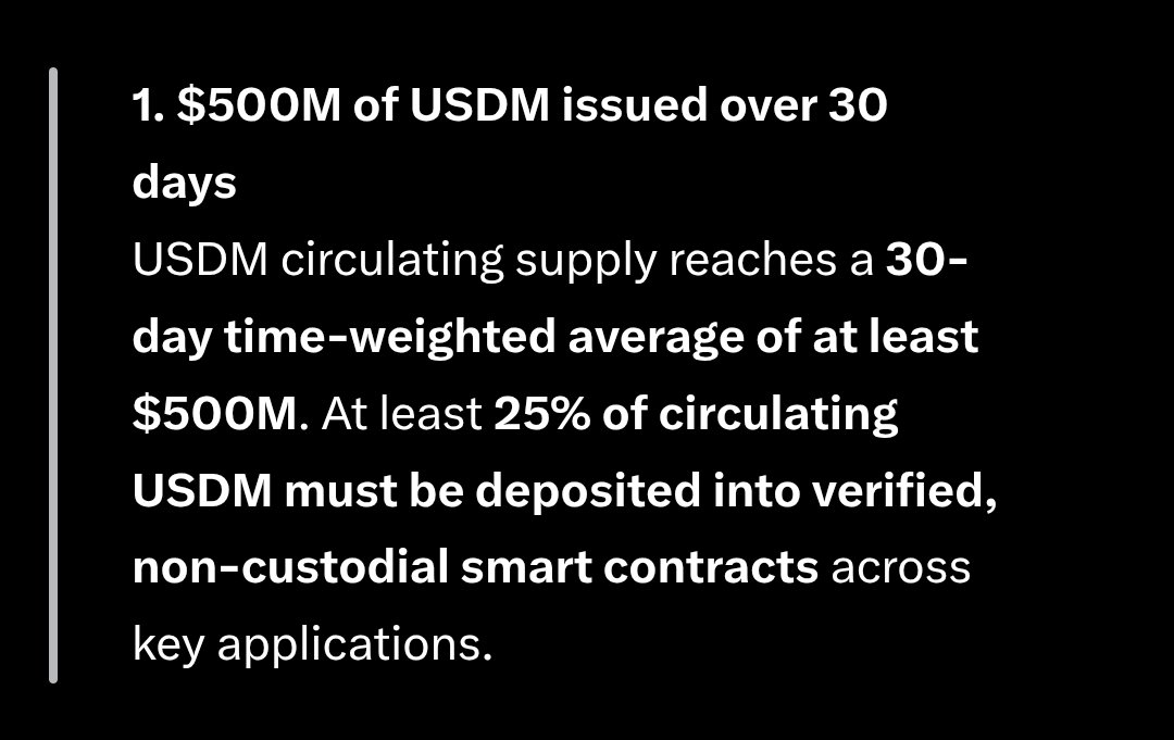 The Mega team proposes key metrics to achieve 'megaeth', involving USDM issuance and application deployment.