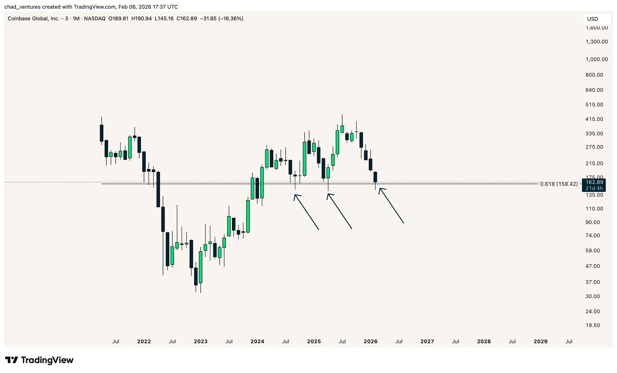 $COIN repeated the 2024 and 2025 flush to $158