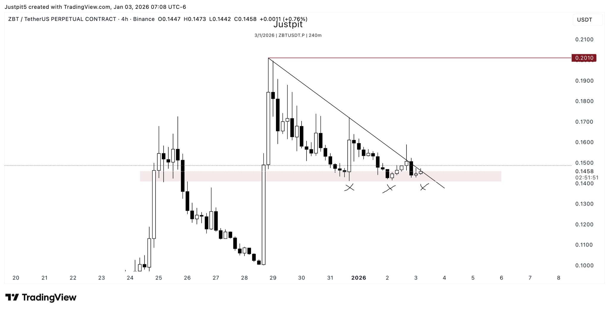If ZBT flips this resistance into support, the setup opens room for a continuation move higher toward the next supply zone.