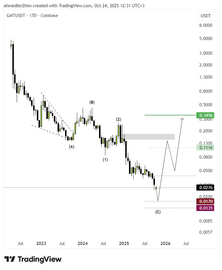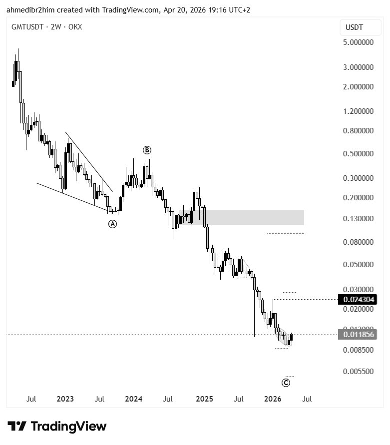 Ahmed Ibrahim TA_Analyst Trader S5.95K @ahmedibr2him$GMT It may move at any time ..! I expect the correction to end and the bottom to form around 0.017 : 0.013, not necessarily reaching those prices. Start of bullishness: 0.042 ☑️ Expected targets 🎯 : 🟢First target: 0.111 🟢Second target: 0.345 #Altseason | #Crypto | #GMT https://t.co/bwrV1D3CE0