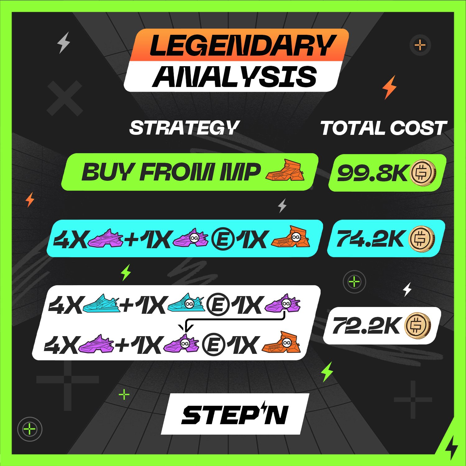 Madivaan OnChain_Analyst Educator B4.84K @Crypto30Y📊 Legendary Cost Analysis – Solana Realm 👟🟠 With #STEPN Legendary Enhancement expanded to OG sneakers, there are multiple ways to obtain a Legendary Sneaker. But the key question is simple: Which strategy is the most cost-efficient? 🤔 Let’s break down three main approaches based on current floor prices using OG Sneakers. 1⃣ Buy Directly from Marketplace The simplest path: 👟 Buy a Legendary Sneaker from the marketplace 💰 Cost: ~99.8K GMT No extra steps. No risk. Instant ownership ⚡ 2⃣ Enhance from Epic Sneakers Requirements: 🔹 1 Epic OG (16.6K GMT) 🔹4 Epic Sneakers (43.2K GMT) 🔹Enhancement cost (10.8K GMT + 25.2 GST) ➡️ Total Cost: ~74.2K GMT A more involved process, but 25% cheaper than MP. 3⃣ Full Path (Rare → Epic → Legendary) The longest route: 🔷Step 1: Buy 1 Rare OG (4.5K GMT) + 4 Rare Sneakers (7.6K GMT) → Enhance to Epic OG (1.6K GMT + 6.4K GST) 🔷Step 2: Add 4 Epic Sneakers (43.2K GMT)+Enhancement cost (10.8K GMT + 25.2K GST)→ Enhance to Legendary ➡️ Total Cost: ~72.2K GMT This method requires multiple steps But currently the most cost efficient way to own an OG Legendary Sneaker. 🔎 Conclusion Based on current floor prices: 🥇 Best option: Full upgrade path from Rare (~72.2K GMT) 🥈 Second best: Enhance using 1 Epic OG + 4 Epics (~74.2.6K GMT) 🥉 Least efficient: Buy directly from the marketplace (~99.8K GMT)