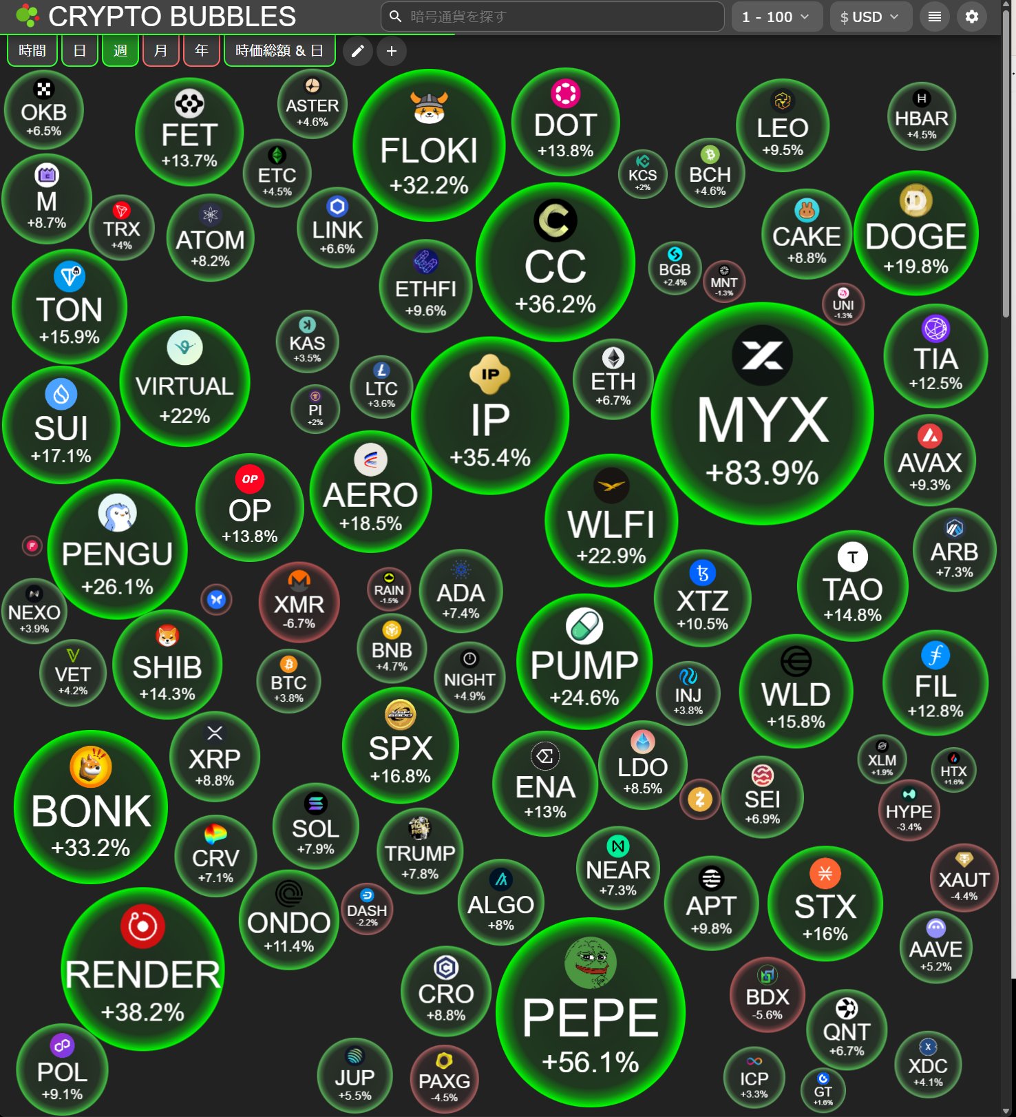 ハゲ先生 TA_Analyst Trader B31.06K @hagesenseiAltcoins went fully higher this week 📈 Meme coins that were crashing have rebounded strongly, giving a bottoming feeling What is the soaring MYX (market cap rank 48)?❓When I looked it up, it turned out to be the native token of a DEX, ranking 22nd among DEX exchanges Tokens that individuals don’t seem to buy much can surprisingly rise 😓 ➕➕➕ https://t.co/Bpmb556Q34
