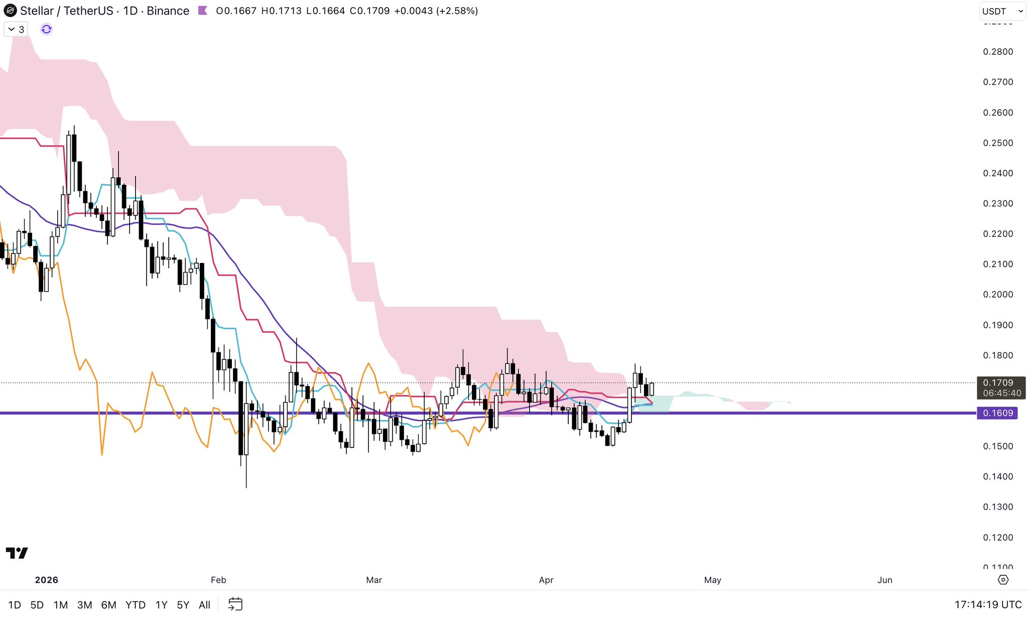 XLM is forming a bullish technical pattern and may break key resistance, making it worth watching over the long term.