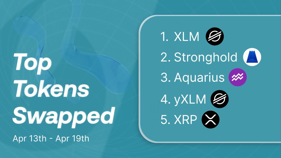 Last week's top tokens swapped on LOBSTR were: 1. XLM 💫 - @StellarOrg 2. SHX 💳 - @strongholdpay 3. AQUA ♒ - @AquariusDeFi 4. yXLM 🪐- @ultrastellar 5. XRP 🤵‍♂️ - @FchainIO https://t.co/zvdMsGsydQ
