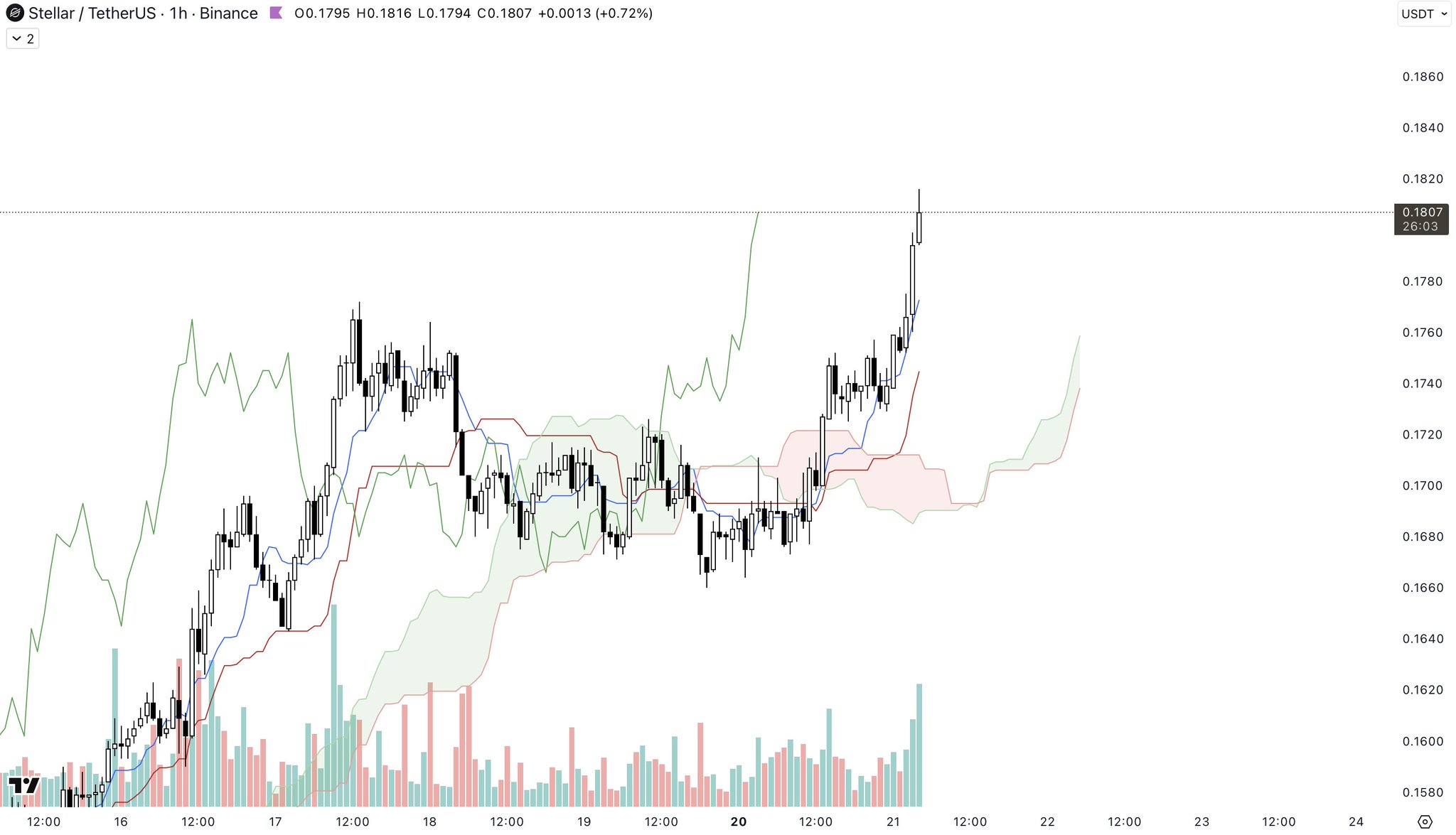 XLM shows strong technical indicators and upward momentum, could surge quickly, worth watching.