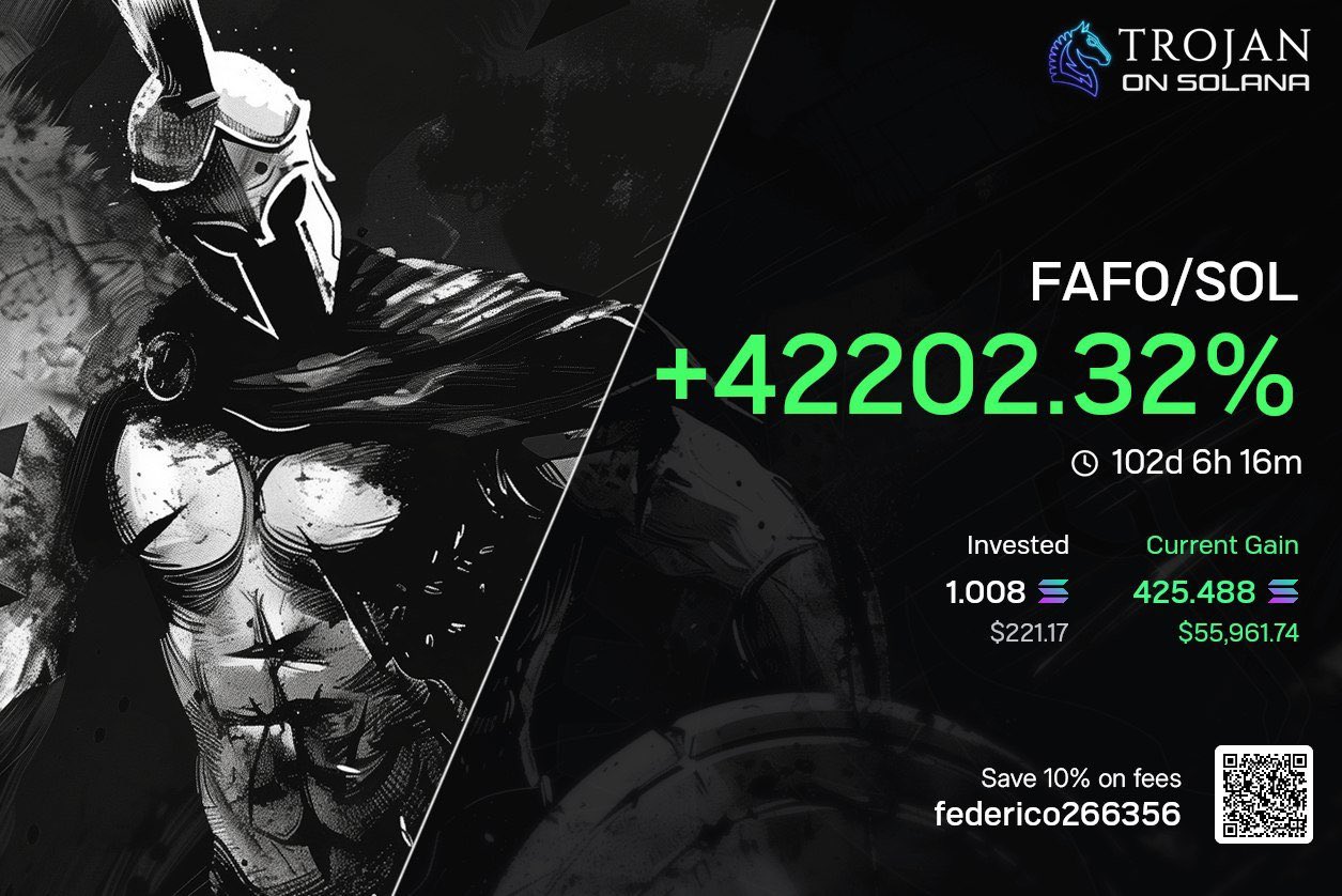 FAFO token on Solana chain achieved an astounding >42,000% return in 102 days, encouraging long-term holding.