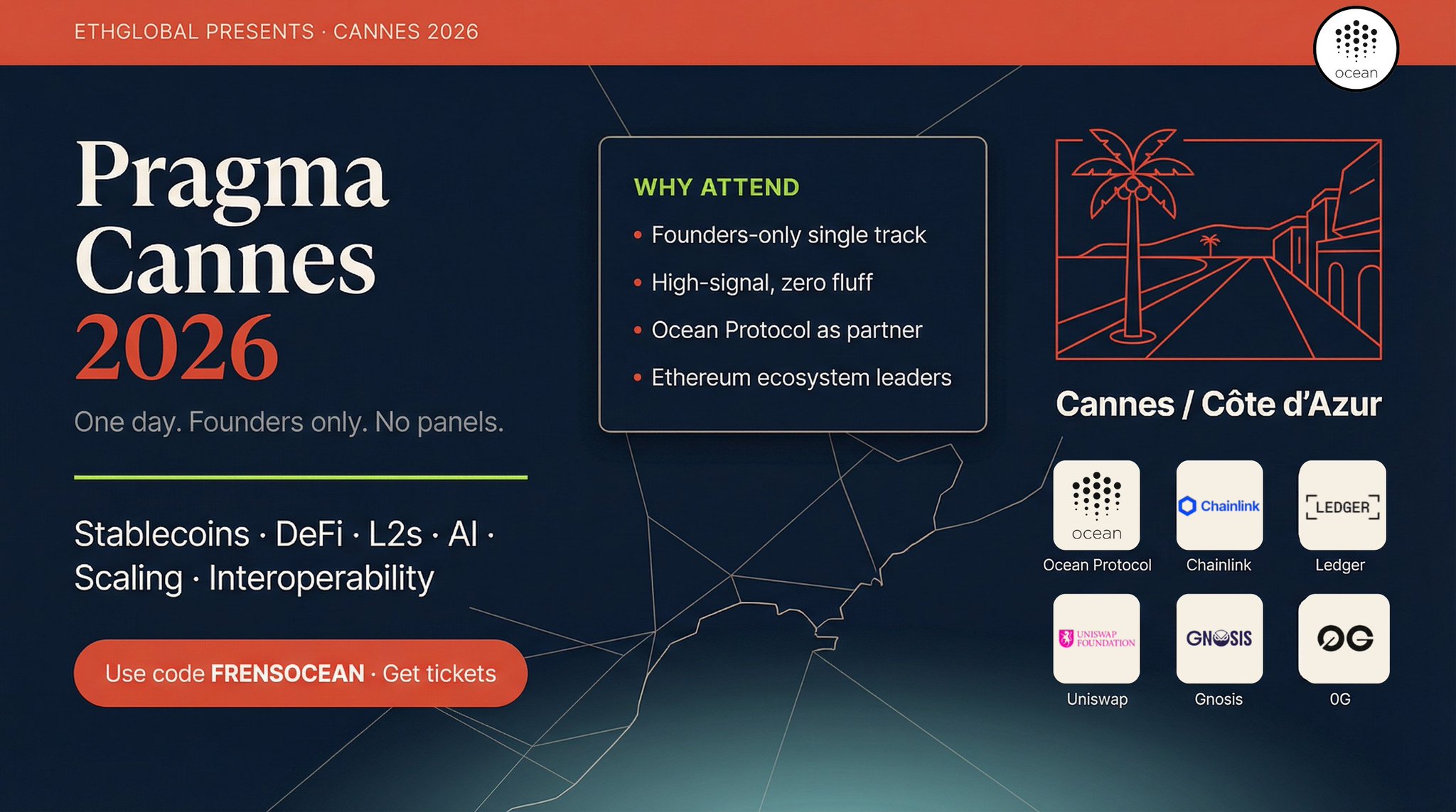 @oceanprotocol is a proud partner of Pragma Cannes 2026, organized by ETHGlobal in collaboration with Chainlink, Uniswap, Ledger, and others.