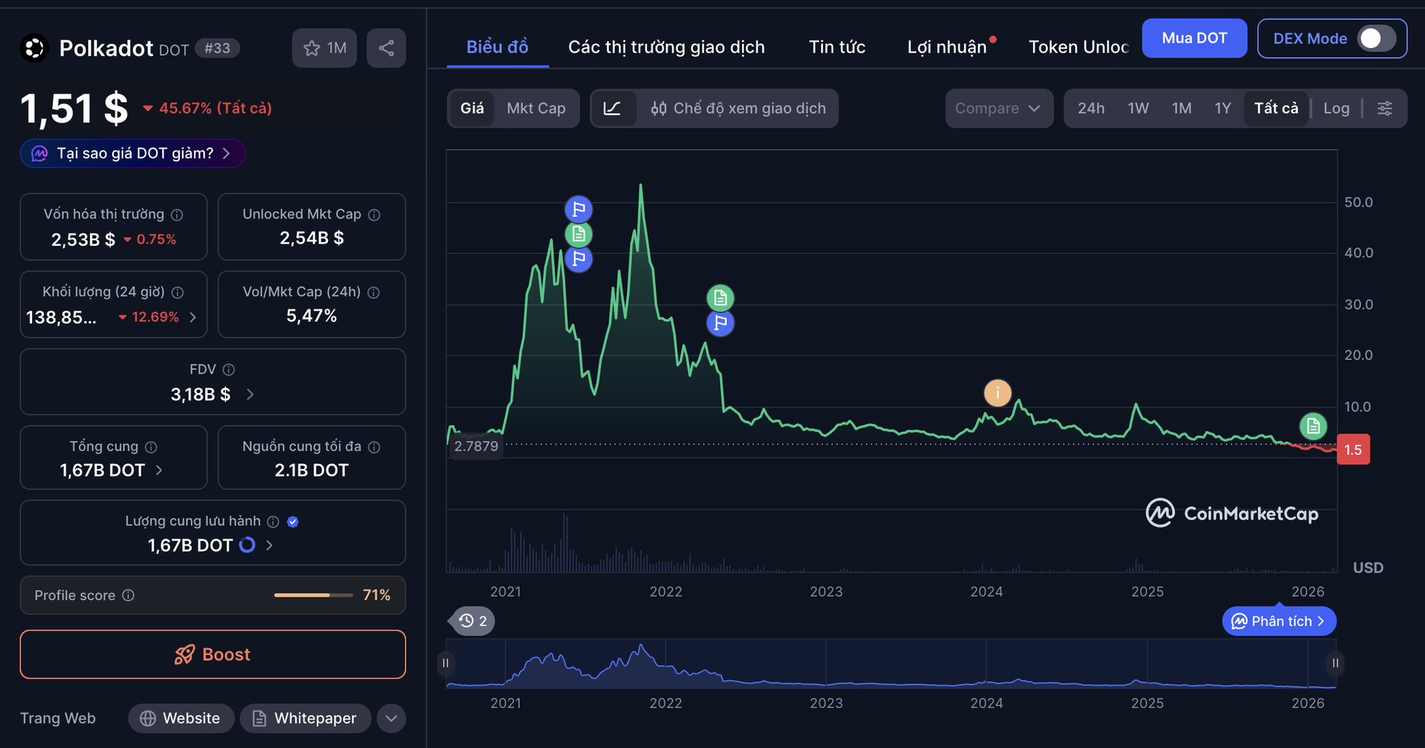 549 58 30.84K Gốc >Xu hướng của DOT sau khi phát hànhTăng giá