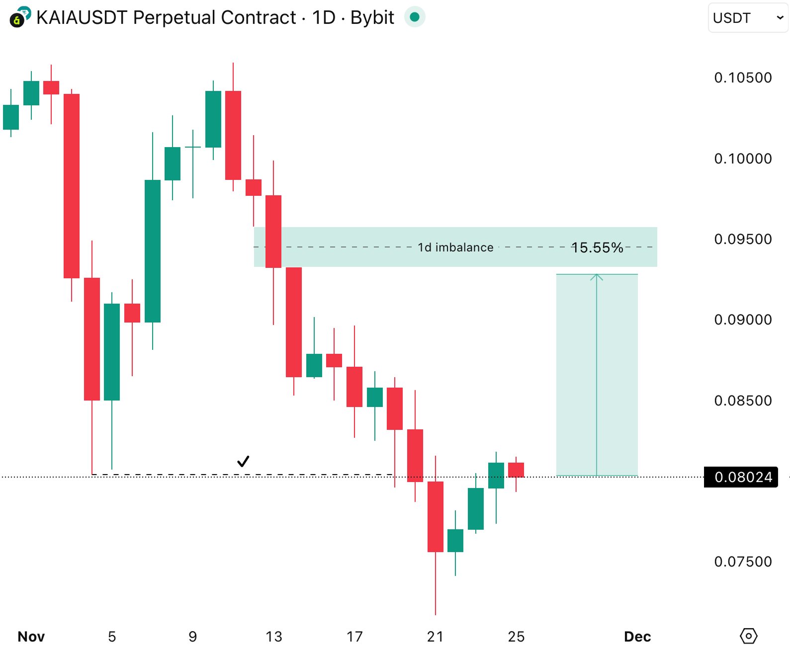 17 8 2.95K Gốc >Xu hướng của KAIA sau khi phát hànhTăng giáThe KAIAUSDT daily chart shows a strong imbalance area, which may trigger a rebound, making it a good entry point.