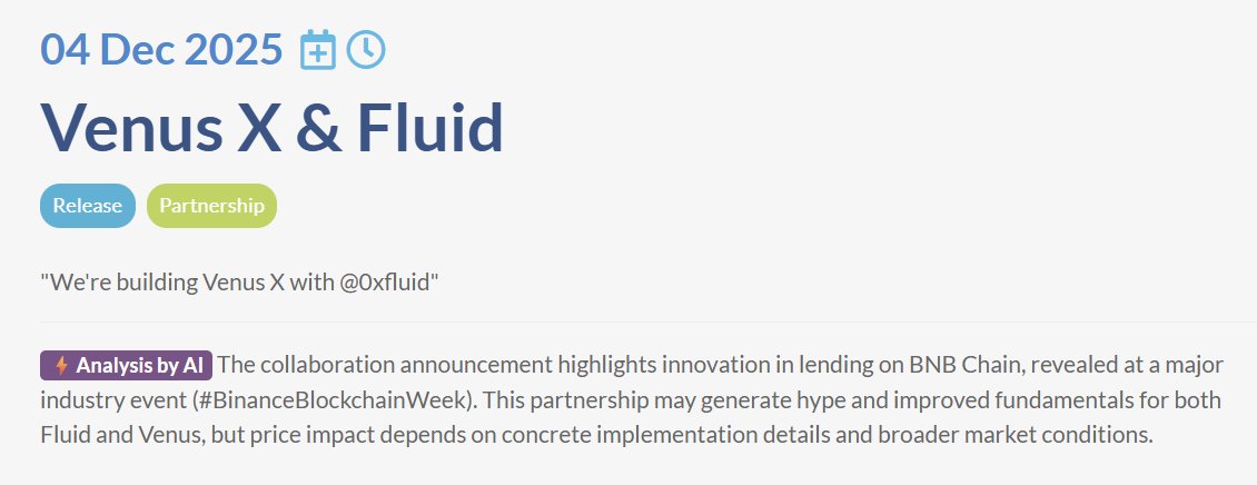 CoinMarketCal Media Researcher D111.09K @CoinMarketCalThree noteworthy events added in the last 24h ✨ $KAIA (@kaiachain) 04 Dec 2025 AlphaSec. Exchange 👉 https://t.co/67qkal8rEj $BSTY (@globalboost) 04 Dec 2025 Dex-Trade Suspension 👉 https://t.co/DcoarM1NqC $FLUID (@0xfluid), $XVS (@venusprotocol) 04 Dec 2025 Venus X & Fluid 👉 https://t.co/SFMFcjvcFs More highlights 👉 https://t.co/LhZzIYHOty