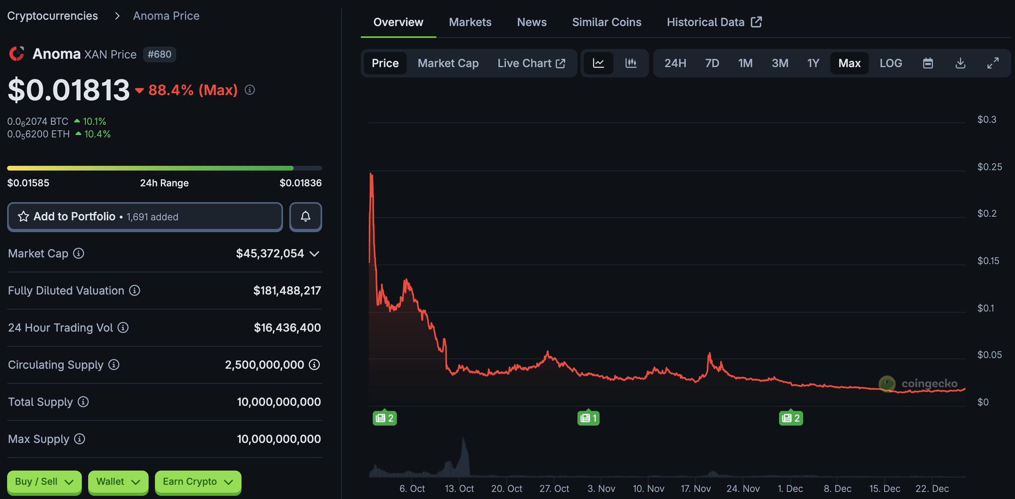 9 3 711 Gốc >Xu hướng của XAN sau khi phát hànhGiảm giá