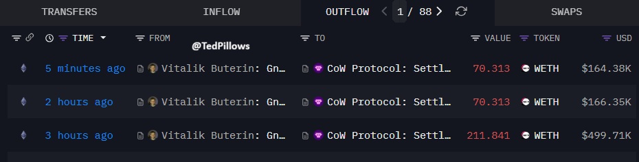 Vitalik has sold $830,440 in $ETH today.