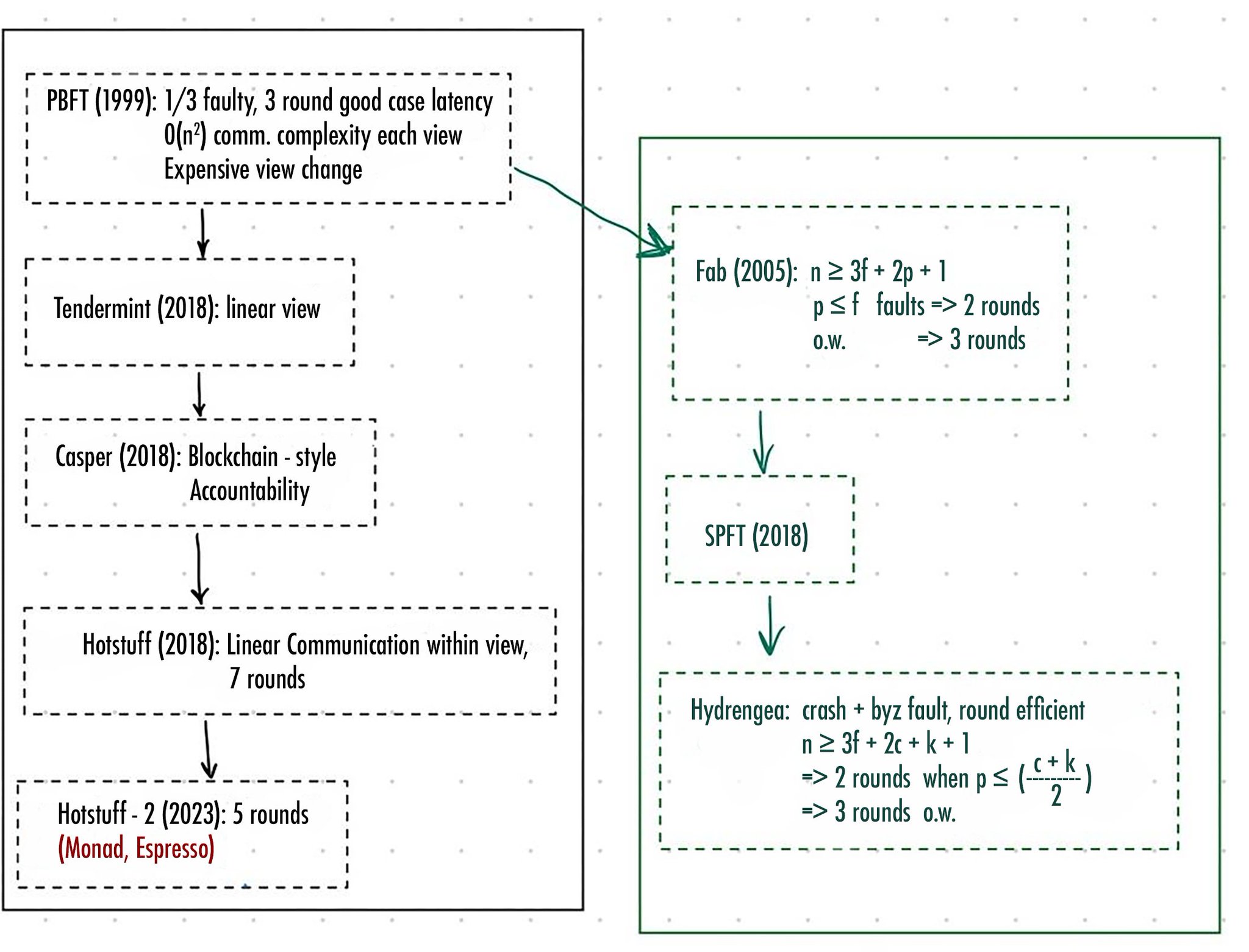 Soubhik Deb D2.70K @soubhik_deb这篇内容是给那些想了解共识协议如何从 PBFT (1999) 演进到 Hotstuff-2 (2023) 以及其迭代改进的人... ...形成了 PBFT 系列协议的血脉。 https://t.co/emy04JiIP0