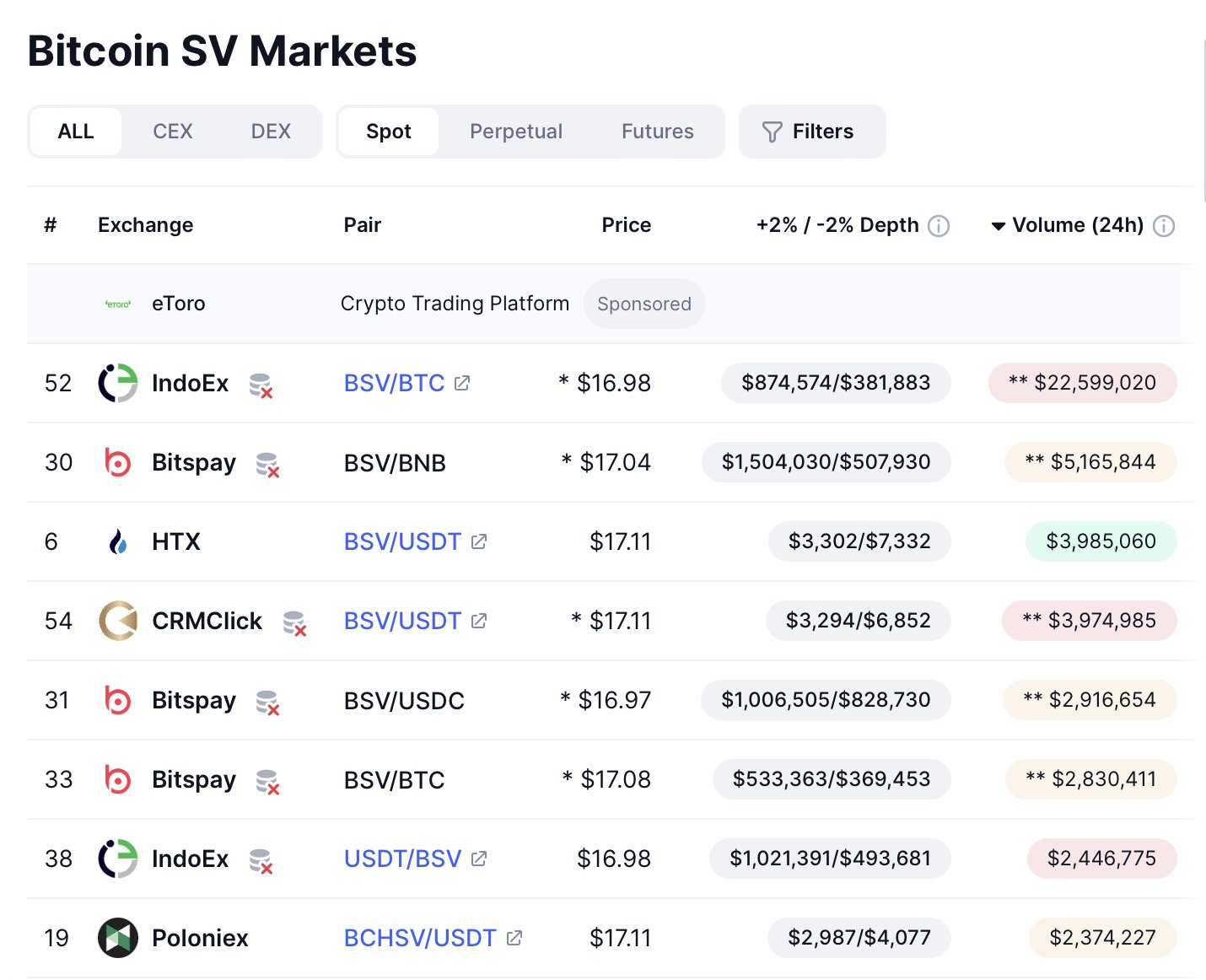 - 发布后BSV走势极度看跌