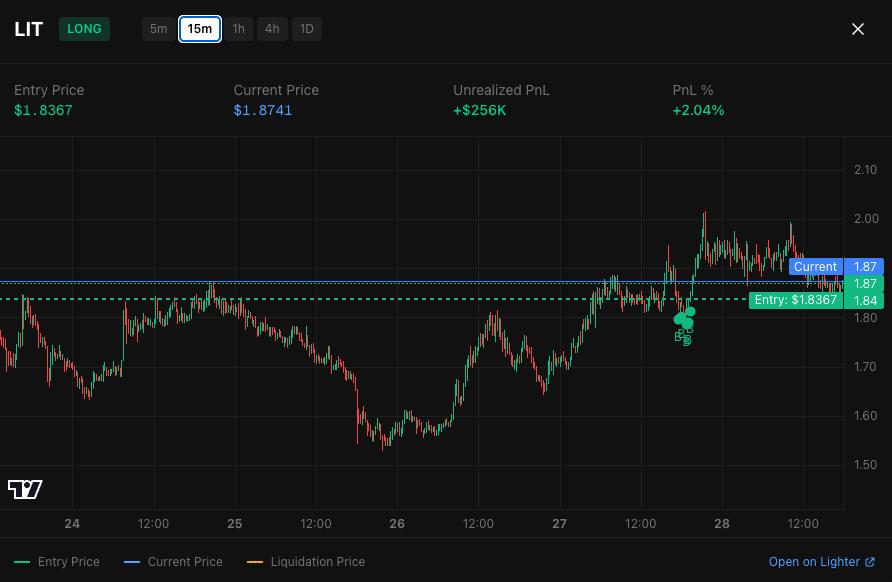 Lighter D117.72K @Lighter_xyz22 1 983 阅读原文 >发布后LIT走势看涨