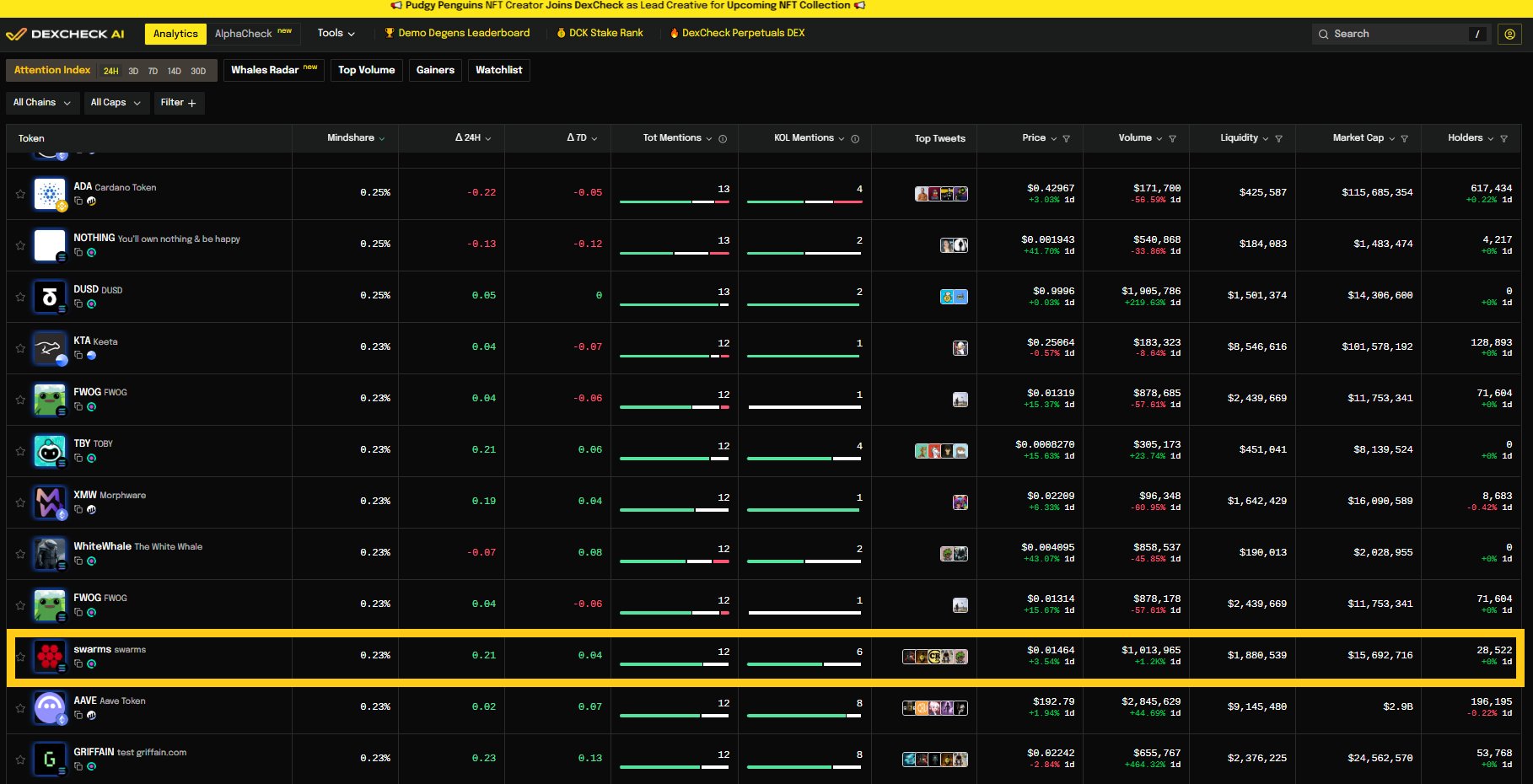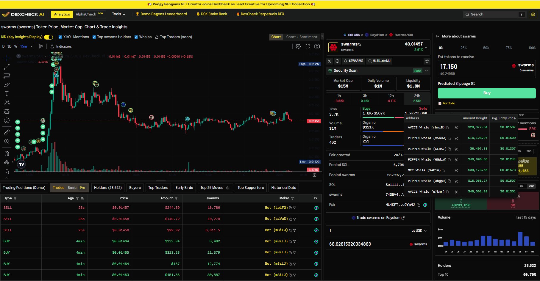 DexCheck AI 链上数据分析师 媒体人 C121.94K @DexCheck_io34 9 10.54K 阅读原文 >发布后SWARMS走势极度看涨- 发布后SWARMS走势看涨