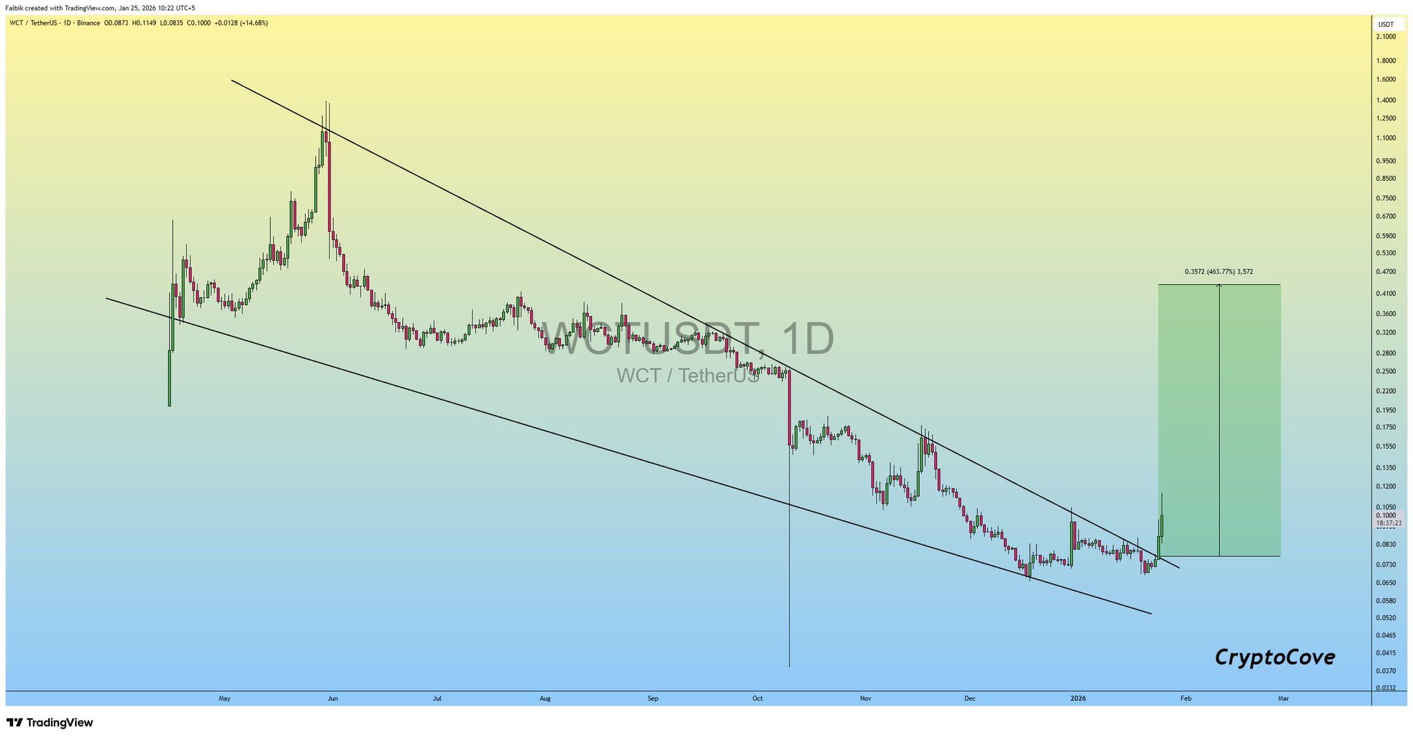 marilyn100x.eth 教育者 DeFi专家 S9.42K @marilyn100x76 13 1.72K 阅读原文 >发布后WCT走势极度看涨