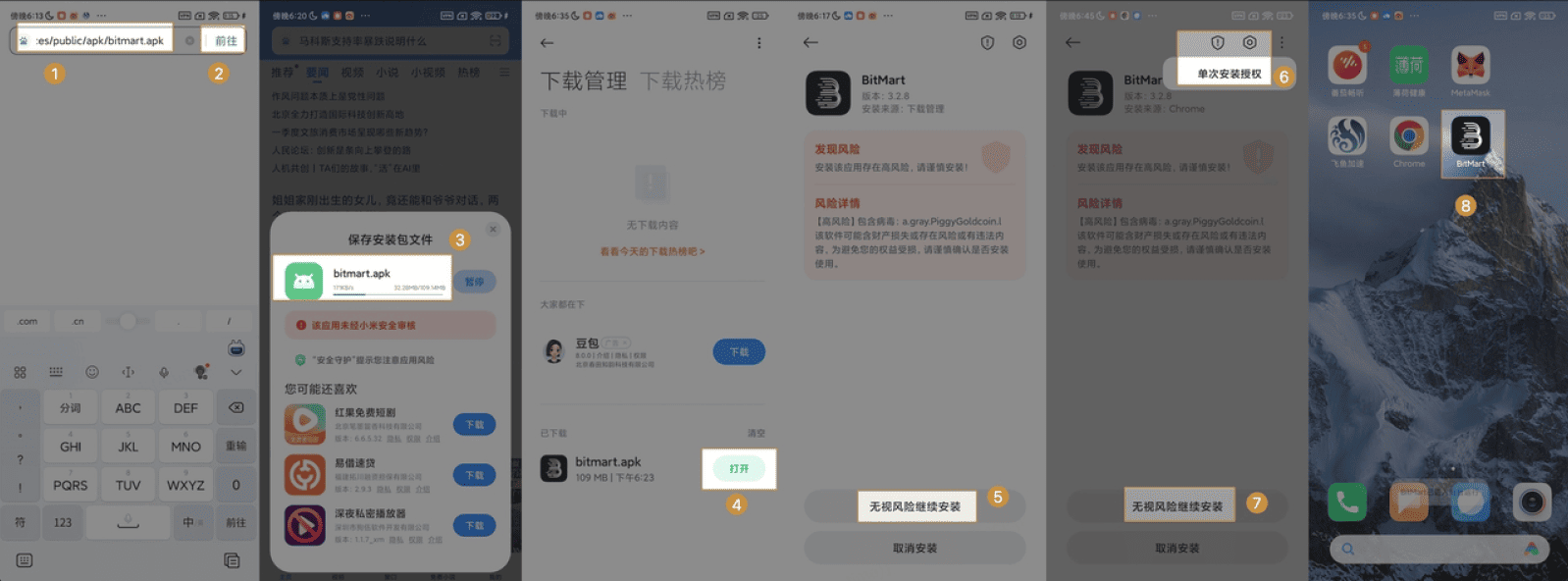 • 打开【自带浏览器】【复制链接】到浏览器中点击【前往】进行下载,遇到提示点击【继续安装】,最后界面上出现打开即表示安装完成