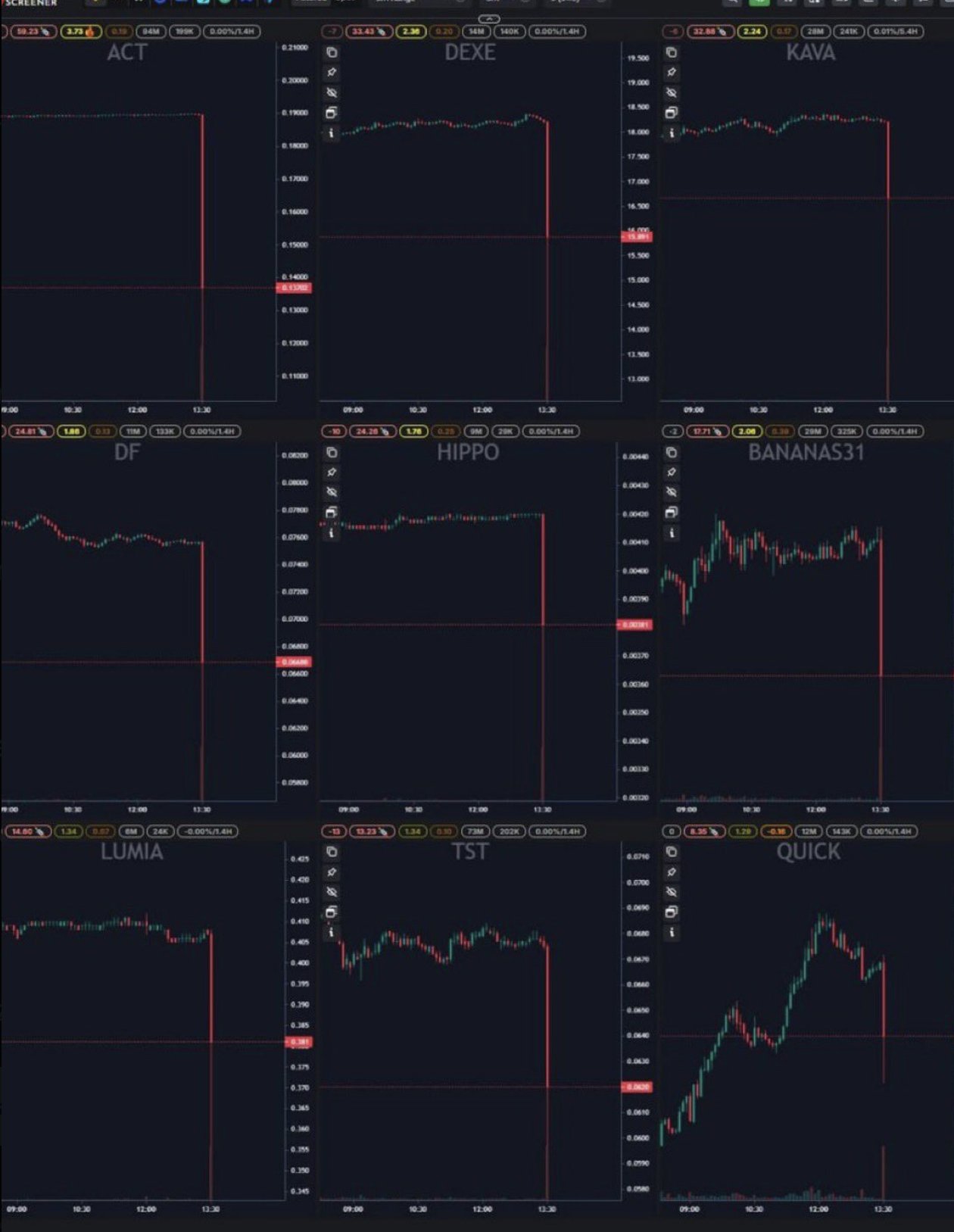 您可能记得;DWF Labs和Wintermute作为Binance的做市商,曾在单根K线内售出并清算了如#ACT - #HIPPO - #DF - #TST - #LUMIA - #KAVA等代币。