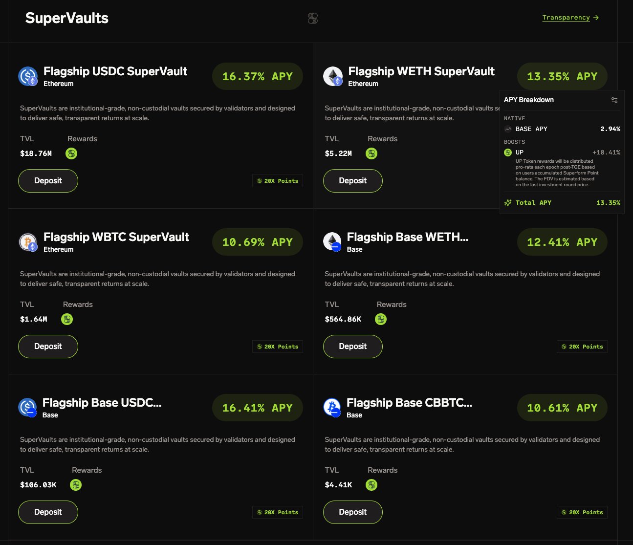 > TVL 6200 万美元,超过 18 万存款者,SuperVaults 平均年化收益 8.4%