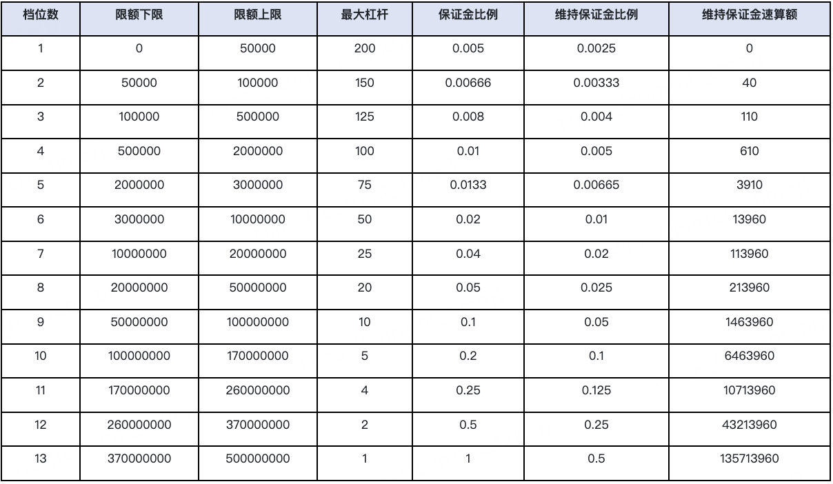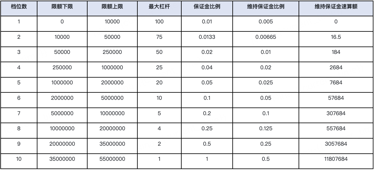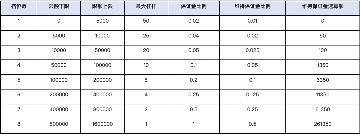 2025年5月16日08:00(UTC)调整XRPUSDT和DOGEUSDT合约交易对最大杠杆倍数为100倍,初始保证金率为0.01,维持保证金率为0.005。