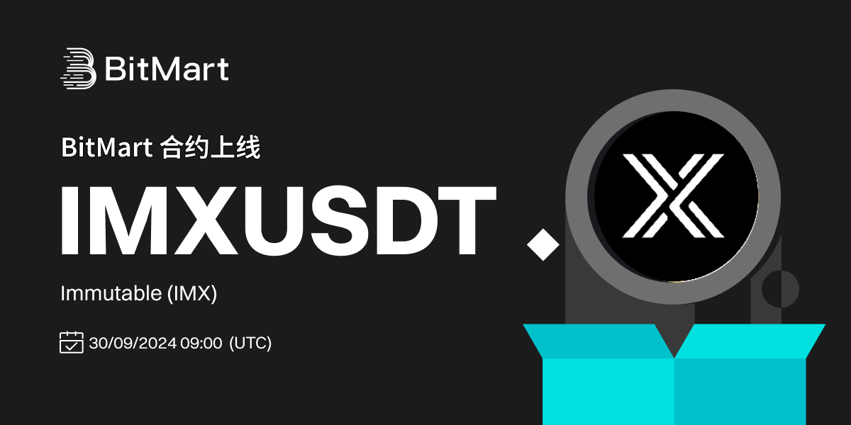 BitMart将于2024年09月30日 09:00(UTC时间)合约上线代币Immutable (IMX)。届时将开通IMX/USDT交易对。交易对各项参数请参照: