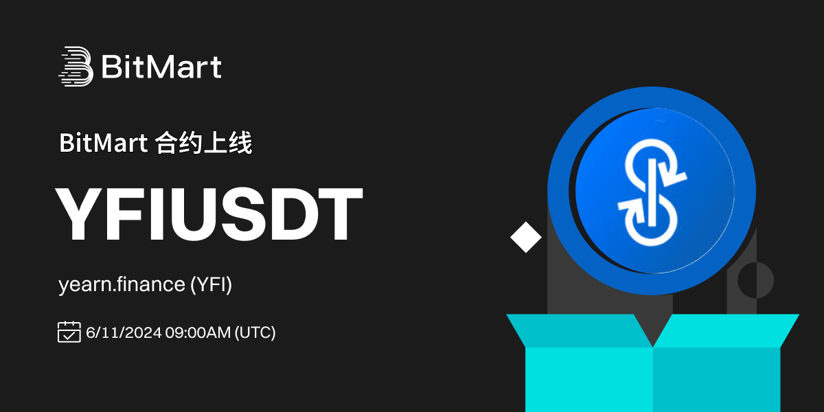 BitMart将于2024年11月6日 09:00(UTC时间)合约上线代币Yearn.finance (YFI)。届时将开通YFI/USDT交易对。交易对各项参数请参照: