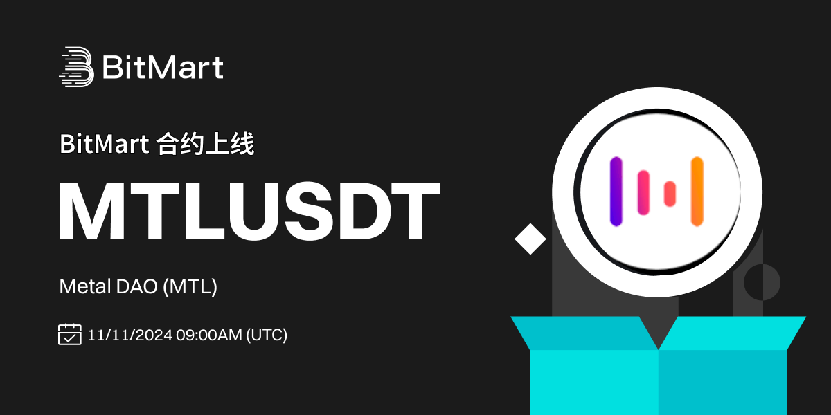 BitMart将于2024年11月11日 09:00(UTC时间)合约上线代币 Metal DAO (MTL)。届时将开通MTL/USDT交易对。交易对各项参数请参照: