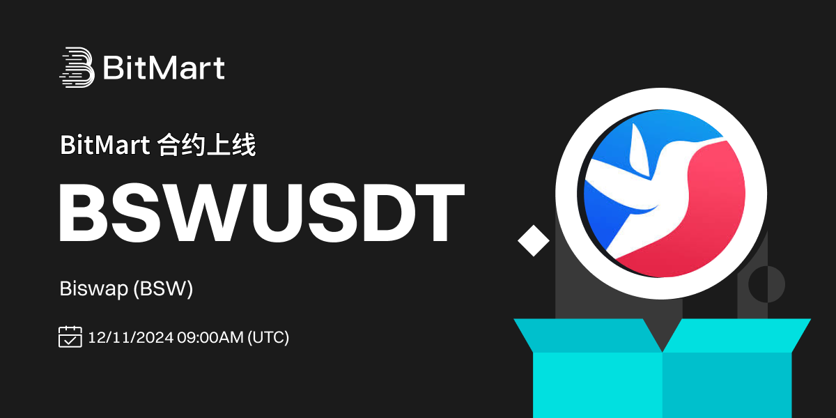 BitMart将于2024年11月12日 09:00(UTC时间)合约上线代币 Biswap (BSW) 。届时将开通BSW/USDT交易对。交易对各项参数请参照: