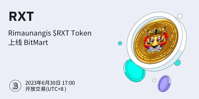 BitMart将于2023年6月30日上线代币Rimaunangis $RXT Token (RXT)。届时将开通RXT/USDT交易对。其他各项功能的开放时间请参照: