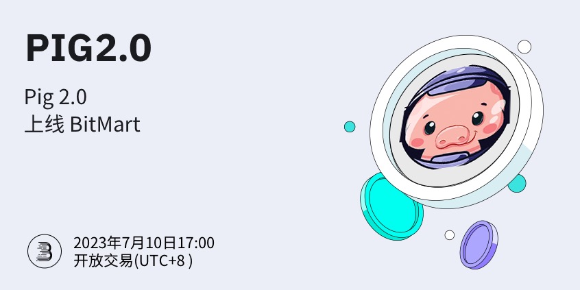 BitMart将于2023年7月10日上线代币Pig 2.0 (PIG2.0)。届时将开通PIG2.0/USDT交易对。其他各项功能的开放时间请参照: