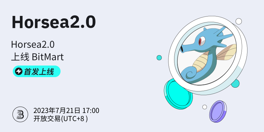 BitMart将于2023年7月21日首发上线代币 Horsea2.0 (HORSEA2.0)。届时将开通HORSEA2.0/USDT交易对。其他各项功能的开放时间请参照:
