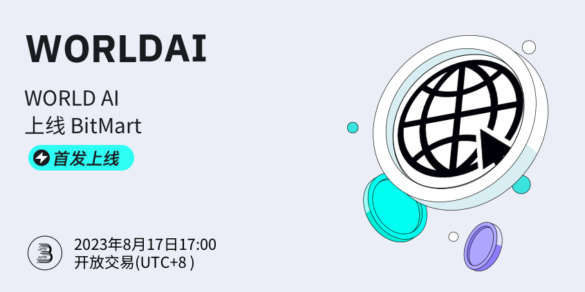 BitMart将于2023年8月17日首发上线代币WORLD AI (WORLDAI)。届时将开通WORLDAI/USDT交易对。其他各项功能的开放时间请参照: