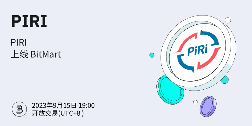 BitMart将于2023年9月15日上线PIRI (PIRI)。届时将开通PIRI/USDT交易对。其他各项功能的开放时间请参照: