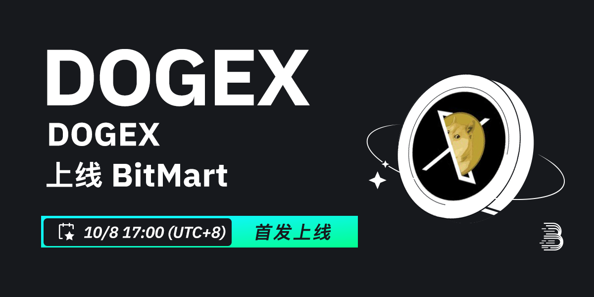 BitMart将于2023年10月8日首发上线代币DOGEX (DOGEX)。届时将开通DOGEX/USDT交易对。其他各项功能的开放时间请参照: