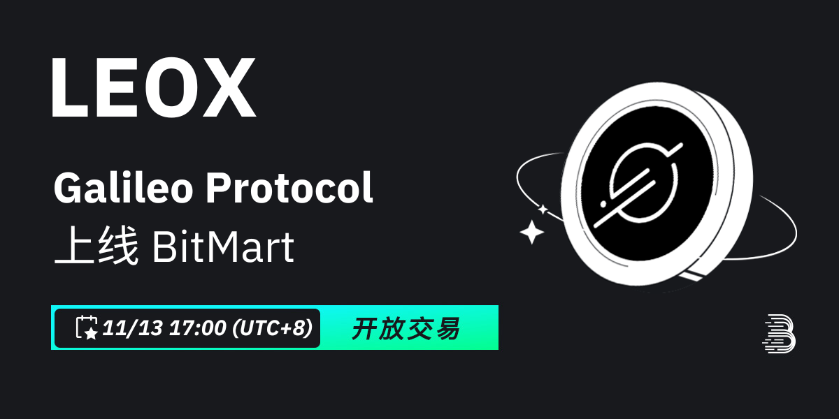 BitMart将于2023年11月13日上线代币Galileo Protocol (LEOX)。届时将开通LEOX/USDT交易对。其他各项功能的开放时间请参照: